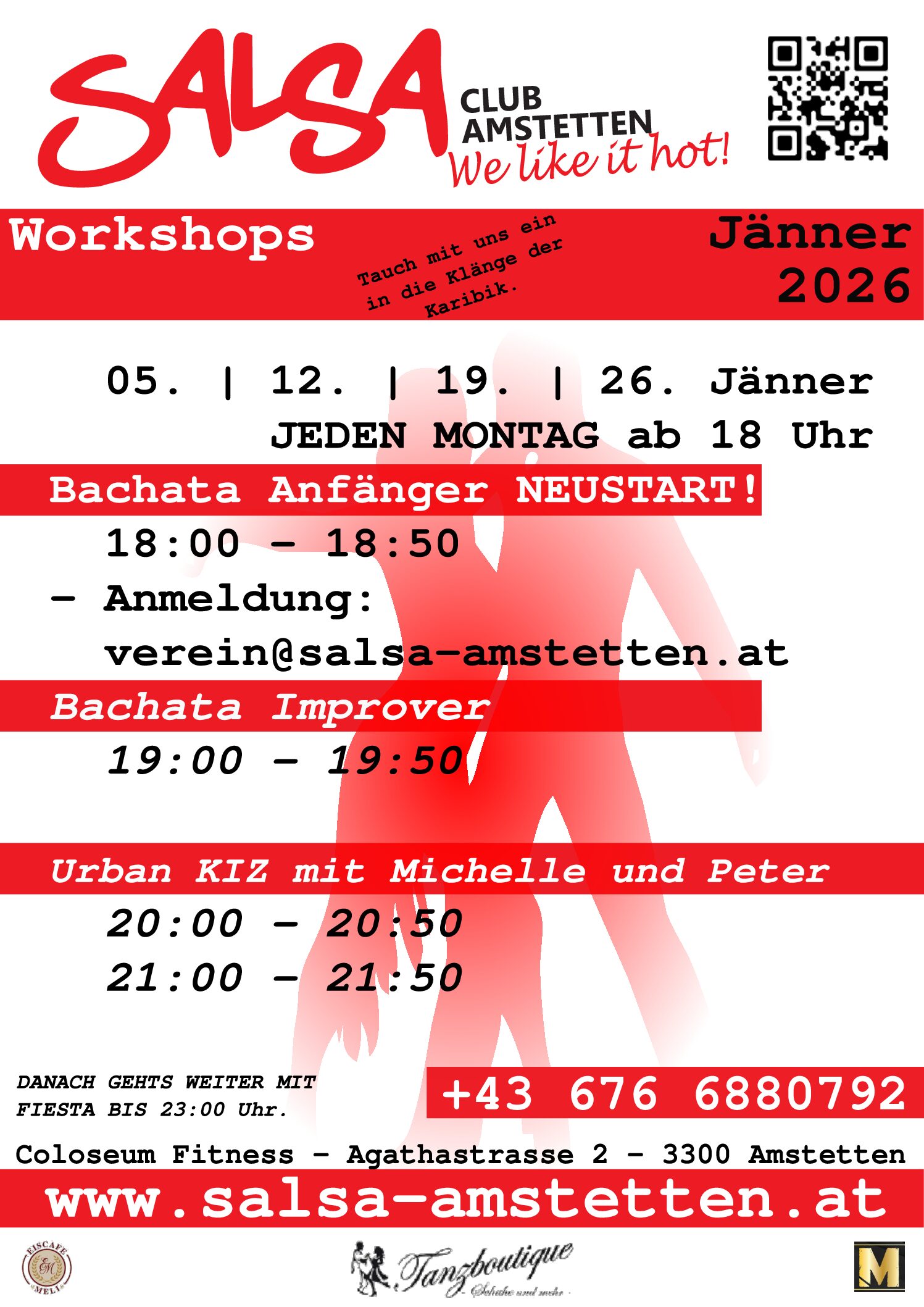 Bei uns gibts Workshops von Salsa-LA und Salsa-Cubana, über Rueda de Casino, Bachata und Kizomba, ob mit oder ohne Vorkenntnisse – bei uns ist für jeden etwas dabei!